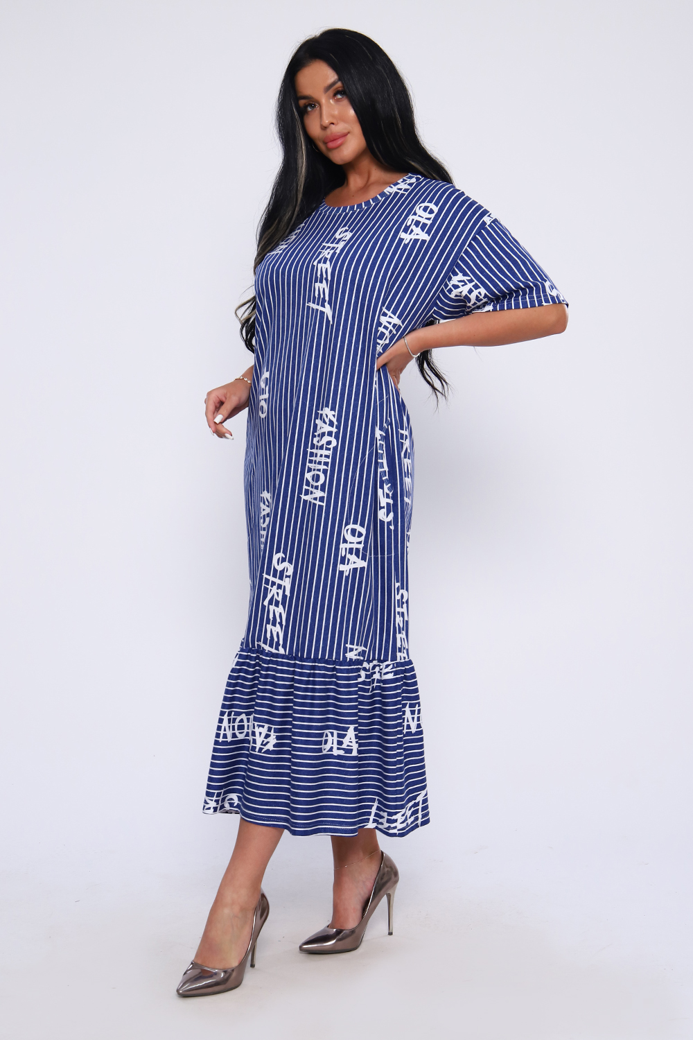 Женское летнее платье-туника, полуприлегающего силуэта с карманами и оригинальной оборкой внизу изделия. Платье-туника выполнена из трикотажного полотна - кулирка (100% хлопок).