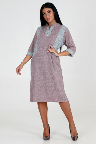Женское Платье свободного покроя со спущенной проймой, рукав 3/4 и круглым вырезом. По бокам комбинированные вставки. Эта модель из полотна , которое не садится при стирке и не вытягивается в процессе носки.