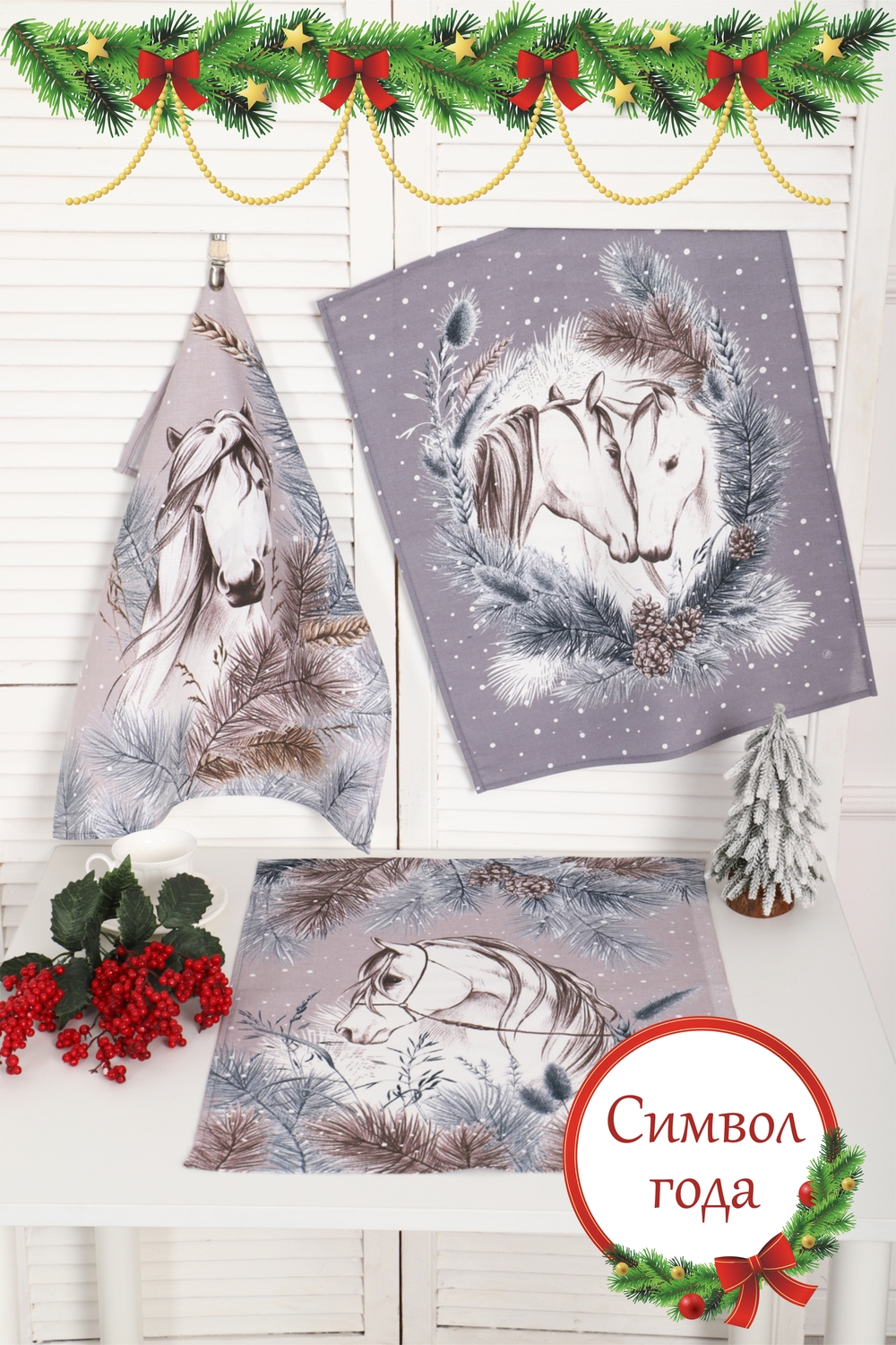 Набор из трех кухонных полотенец изготовлен из прочного хлопчатобумажного полотна - рогожка. Благодаря высокой гигроскопичности ткани, полотенца отлично выполняют свою функцию на кухне. Со временем они не теряют краски и сохраняют размер. Каждое полотенце имеет индивидуальный рисунок с символикой приближающегося 2026 года. Такой приятный и нужный подарок порадует вас и ваших родных, друзей, коллег в преддверии любимого праздника.