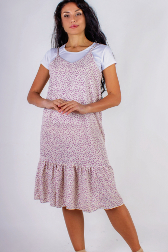 Сарафан полуприлегающего силуэта с фигурным вырезом горловины и воланом на сборке. Идеален для повседневной носки.