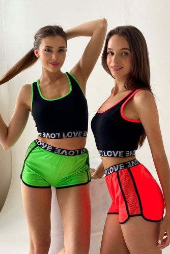 Шорты прямые, на поясе, с карманами, с манжетом. Вдоль боковых швов расположены лампасы из отделочного полотна.
