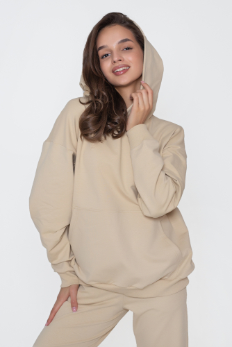 Толстовка женская с втачным длинным рукавом. Данная модель выполнена из трикотажного полотна футер 2-х нитка с лайкрой. Низ изделия обработан поясом с резинкой 4,0 см. с тремя строчками сверху. Рукава и горловина обработана из эластичного трикотажного полотна кашкорсе. Отлично подходит для прогулок и повседневной носки. К этой толстовке отлично подойдут брюки модель 15361.