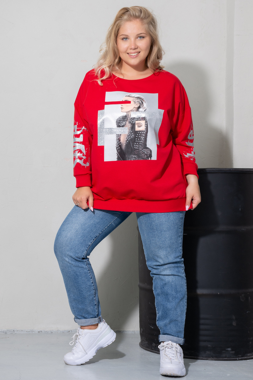 Оверсайз толстовка вещь, которая выглядит размера на 2, а то и на все 3 больше того, который вы обычно носите, Но в такой толстовке его обладательница будет выглядеть женственно и изящно. Благодаря своему объему толстовка делает фигуру хрупкой и позволяет ощущать простоту и свободу. В ней удобно и уютно. Свободный крой. Рукав 7/8. Принт с глиттером, благодаря чему картинка сияет.