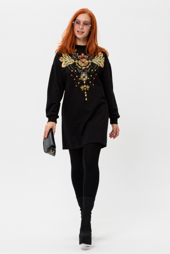 Удобная элегантная туника свободного кроя. Округлый вырез, рукав длинный. На полочке оригинальные стразы. Низ изделия разноуровневый. Идеально сидит на любой фигуре. Ткань не мнется.