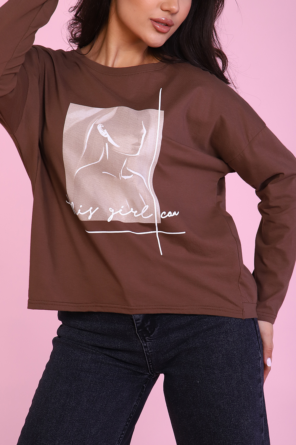 Туника оверсайз мягкого шоколадного цвета и классического белого с нежным принтом. Модель невероятно комфортна, рукав полной длины со спущенной линией плеча, спинка немного присборена и скруглена, чуть ниже полочки, горловина округлая, втачная, с отстрочкой. Для пошива использована ткань высшего качества- компакт. Это самый лучший, дорогой и качественный материал из семейства кулирки.