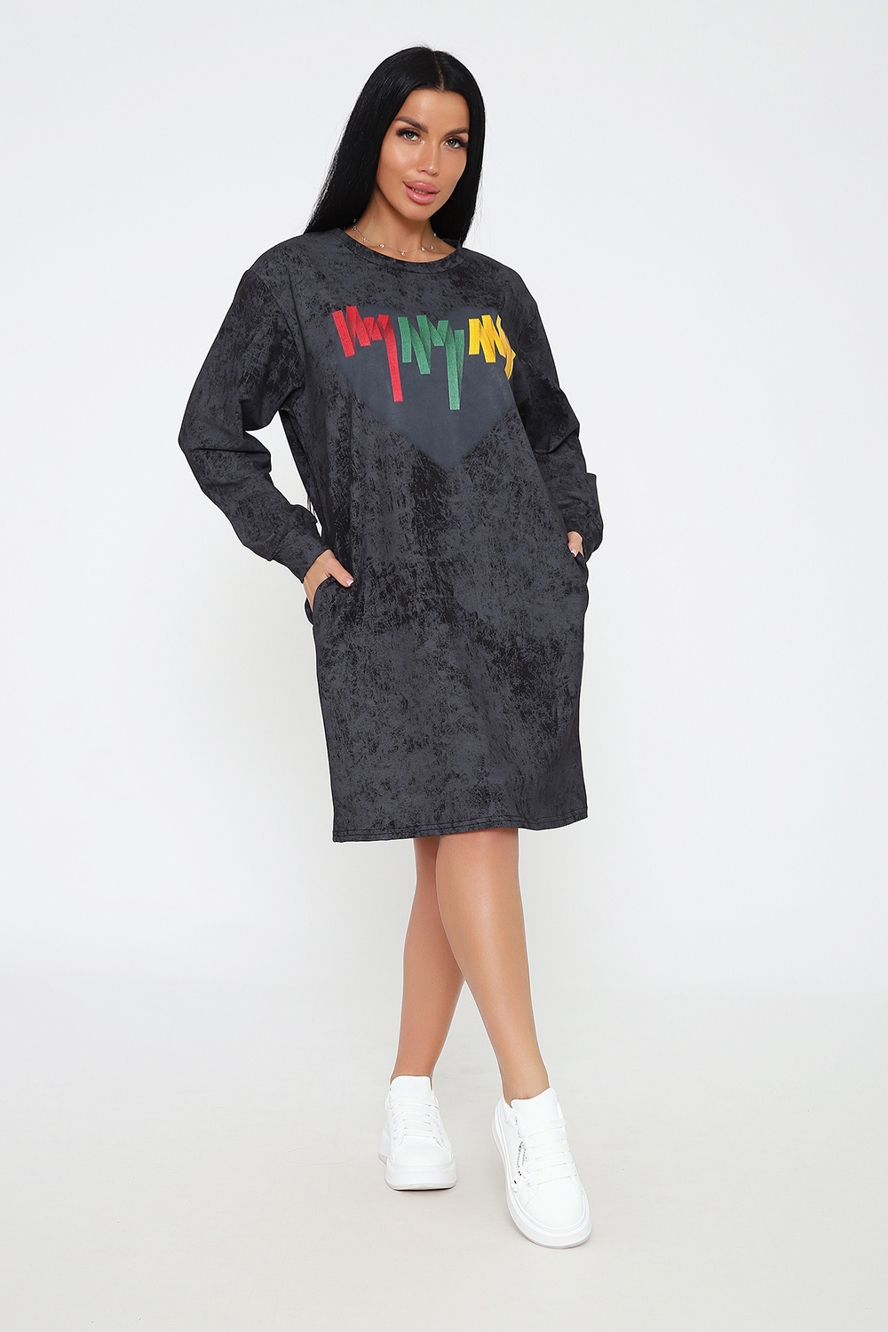 Туника женская с ярким принтом из футера двух нитки варёнка высокого качества кардэ. Модель в стиле оверсайз, длинный рукав на манжете, круглая горловина обработана обтачкой, спущенная пройма, в боковых швах удобные карманы. Стильная, бархатистая, приятная на ощупь туника, обеспечит вам максимальный комфорт и свободу движений. Туника - это универсальный вид одежды, актуально как для работы в офисе, так и для праздничного, повседневного гардероба.