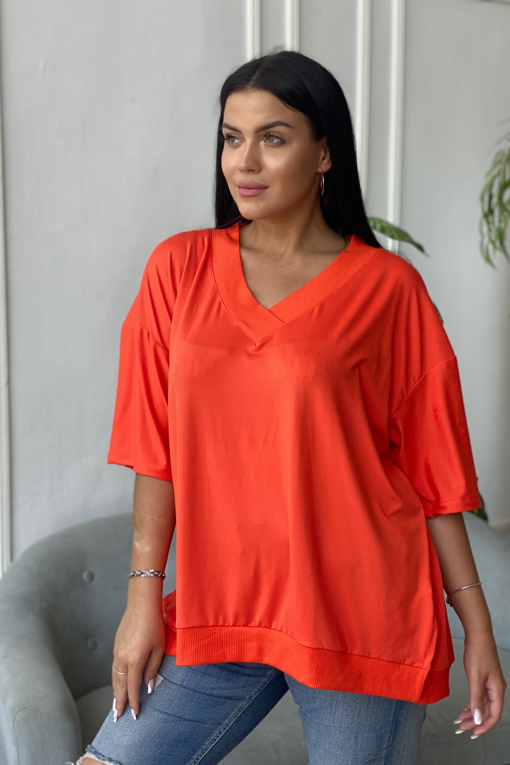 Туника женская прямого силуэта, оверсайз. Вырез Y-образный. Рукав рубашечного покроя. В боковых швах разрезы.