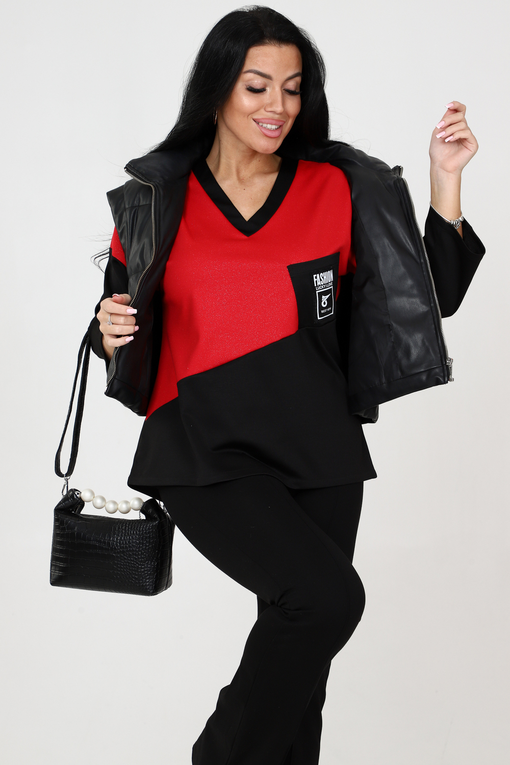 К сегодняшнему дню туника значительно похорошела, преобразилась и вошла в нашу жизнь, как один из самых любимых и востребованных нарядов. Актуальность которых не уменьшается со сменой сезонов. Туника женская востребована в любое время года и в любом месте. Туника силуэта летучая мышь всегда останется модной и незаменимой вещью вашего гардероба. Оригинальное переплетение двух цветов дополняет накладной карман, украшенный декоративной отделкой. V-образная горловина придаст загадочность вашему образу.