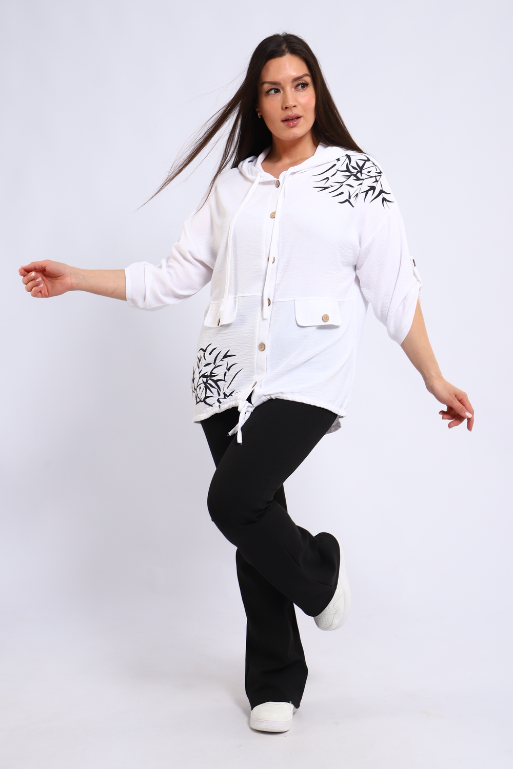 Ищете универсальную и стильную рубашку? Представляем женскую рубашку на пуговицах с капюшоном, идеальную для создания модных образов. Рукав три четверти с удобными патами позволяет регулировать длину, подстраиваясь под ваш стиль и погоду. Оригинальные детали, такие как два декоративных клапана на полочке и уникальная шелкография, добавляют рубашке неповторимый шарм.