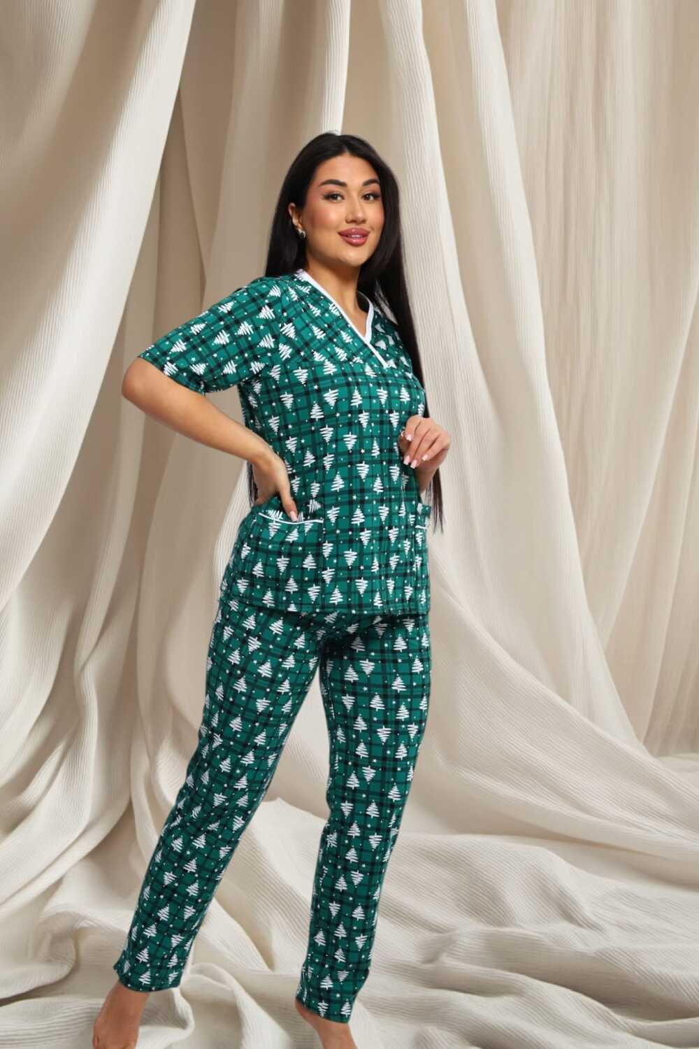 Стильный комплект сочетает в себе комфорт и модный дизайн, окантовка V-образного выреза добавляет изюминку. Верх оснащен функциональными карманами, а удобный крой брюк обеспечивает комфорт в течение всего дня.