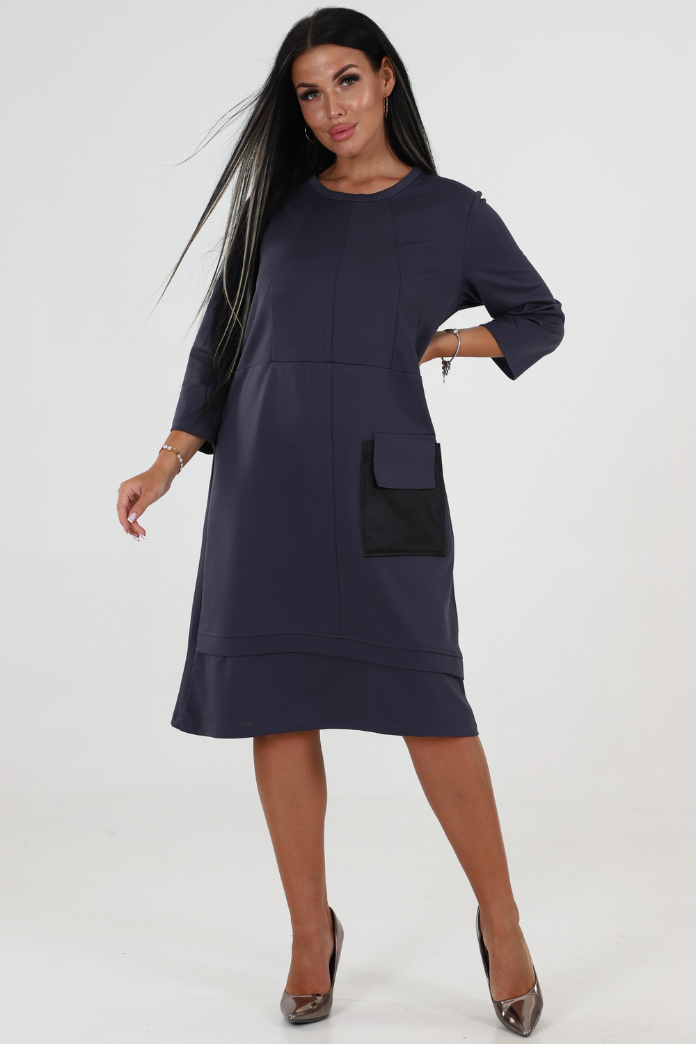 На полочке изделия расположен стильный накладной карман из отделочной ткани, который не только выполняет декоративную функцию, но и добавляет практичности вашему повседневному или праздничному наряду. Использование контрастного материала для кармана делает это платье особенно запоминающимся и визуально привлекательным.