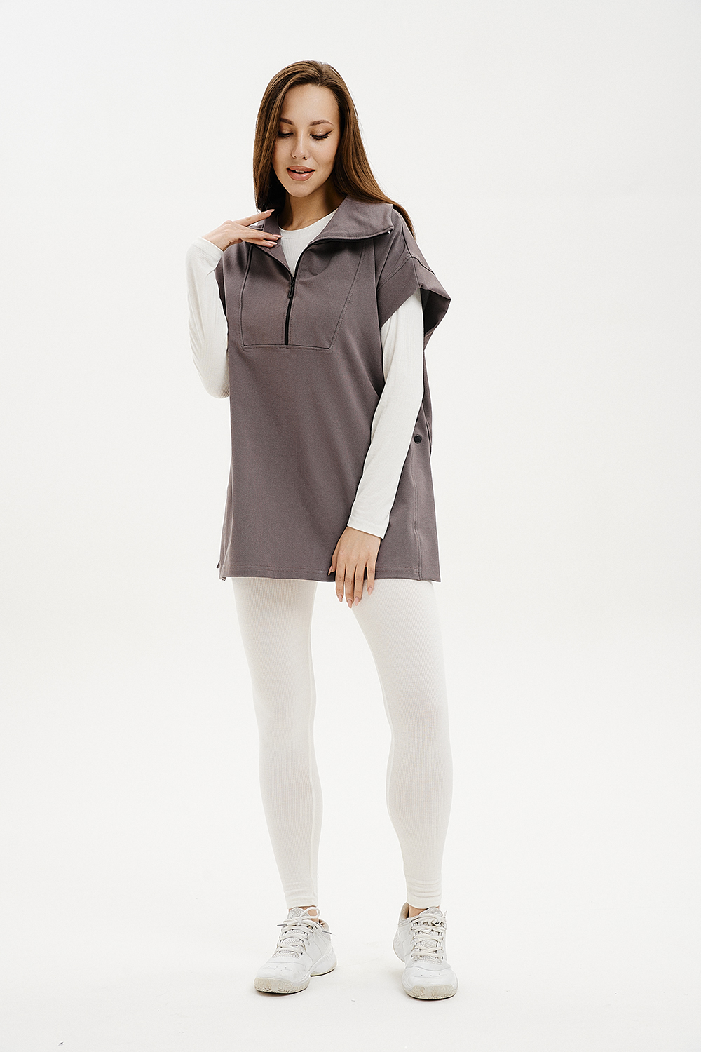 Жилет женский свободного силуэта. Фиксируется кнопками по бокам. Объемный жилет прекрасно подходит на водолазку, а в сочетании с леггинсами сделает ваш образ стильным и уютным. Жилет будет хорош для прогулки осенними и весенними вечерами.