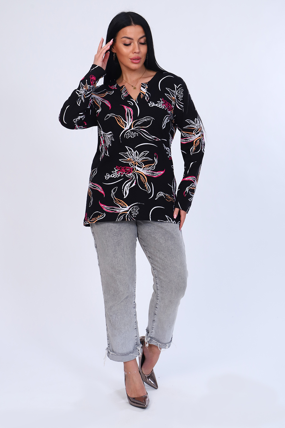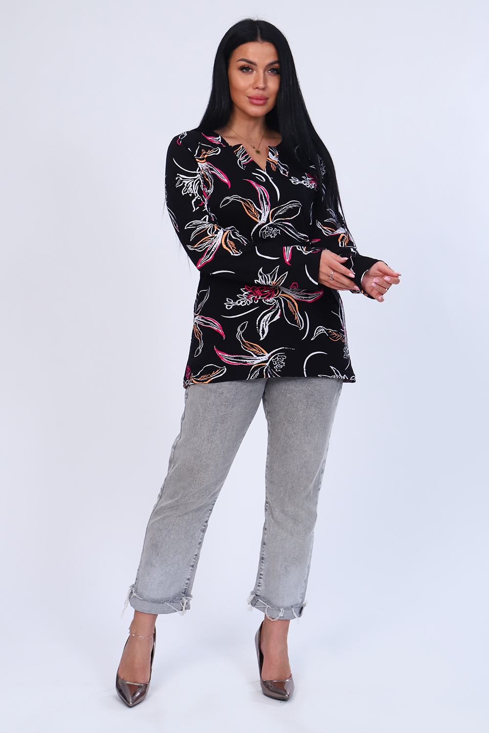 Туника женская с длинным рукавом из 100% хлопка. Оригинальная горловина с планкой без пуговиц. Низ изделия ассиметричен. Цвет: белый; Материал: кулирка;кулирка; Состав: 100% хлопок.