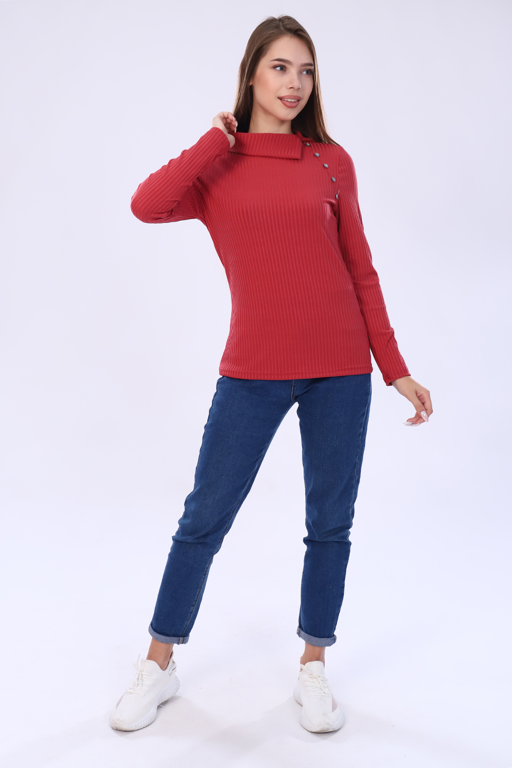 Женская водолазка из лапши - must have каждого сезона осень-зима. Универсальная вещь, которая подойдет и к брюкам, джинсам, юбке, платью, как с пиджаком, так и с кардиганом. Водолазка прилегающего силуэта с отложным воротником. Декорирована пуговицами. Цвет: терракотовый; Материал: лапша;лапша; Состав: 25% вискоза, 5% эластан, 70% п/э.