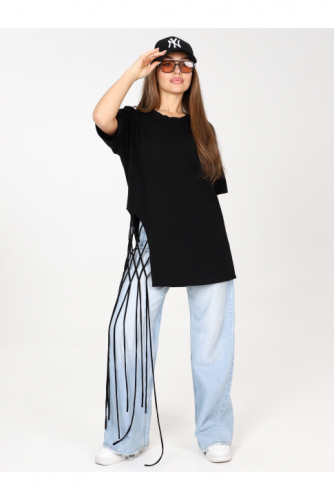 Удлиненная свободная футболка с декоративным плетением.