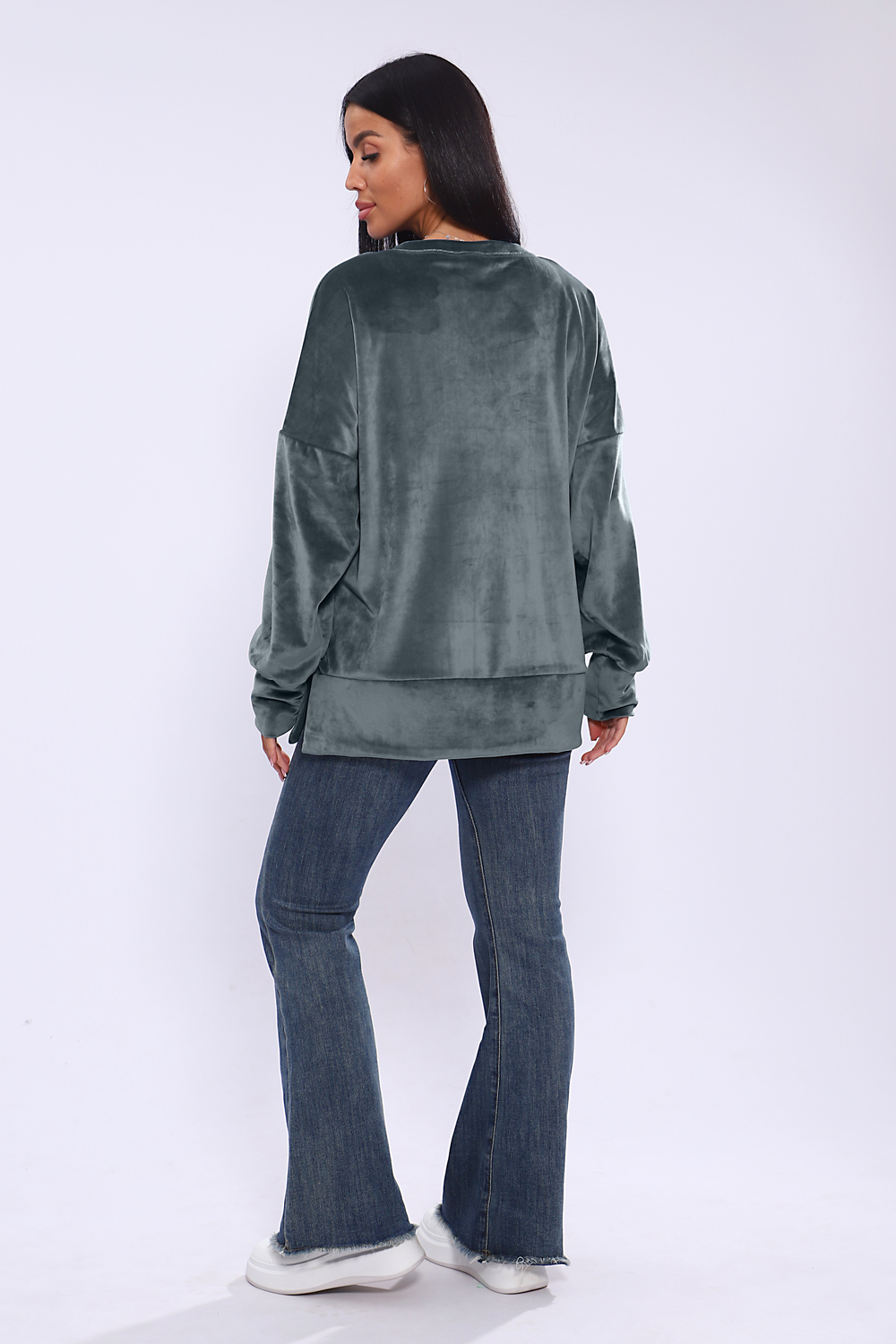 Женское худи свободного кроя со спущенным рукавом и разрезами по бокам. Модель выполнена из премиального велюра. Цвет: серый; Материал: велюр; Состав: 97% полиэстер, 3% эластан.