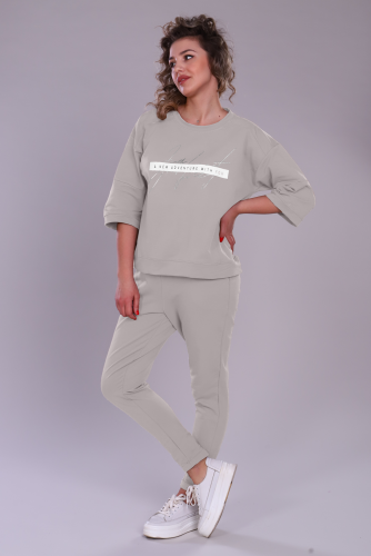 Костюм женский с зауженными брюками с подворотами, на резинке и свободной кофтой с рукавами 3/4. Модель выполнена из футера 2-х нитки (петля - хлопок)