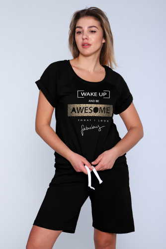 Комплект двойка. Футболка свободного кроя с нанесением принта методом шелкография, шорты свободного покроя с боковыми карманами. Модель представлена в нескольких цветах.