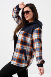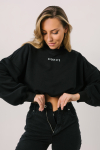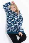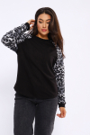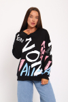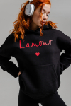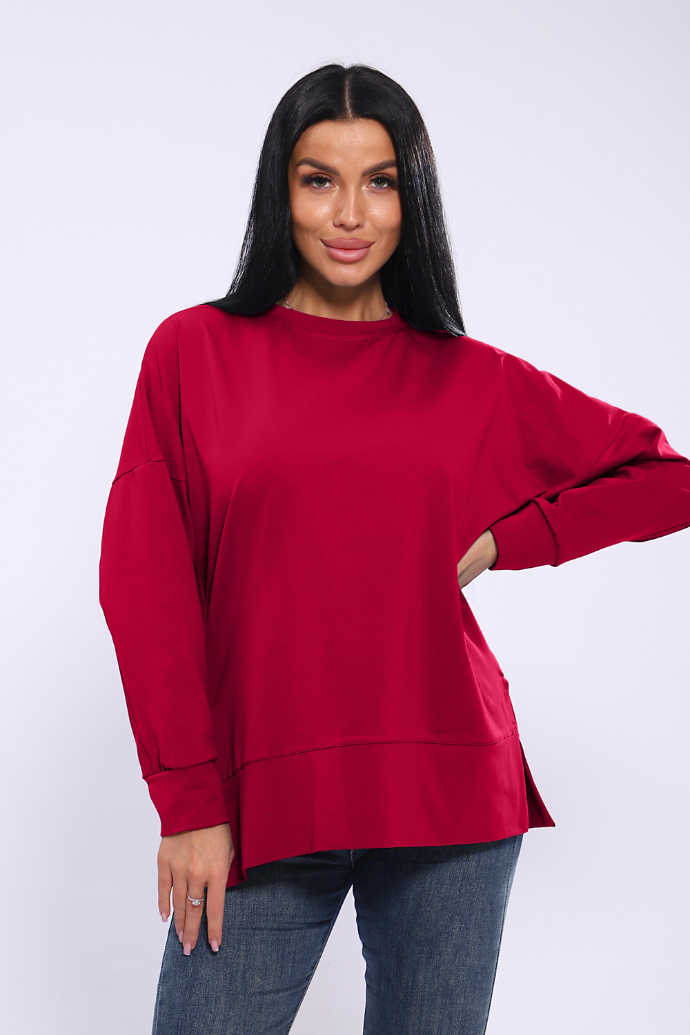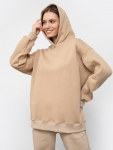 Яркая худи свободного кроя без капюшона. Рукав спущенный, имеется карман-кенгуру и разрезы по бокам.
