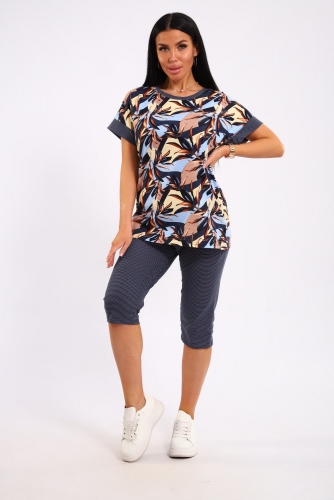 Костюм женский футболка полуприлегающего силуэта, со спущенном плечом на манжете, бриджи с карманами. Цвет: голубой; Материал: кулирка;кулирка; Состав: 100% хлопок.