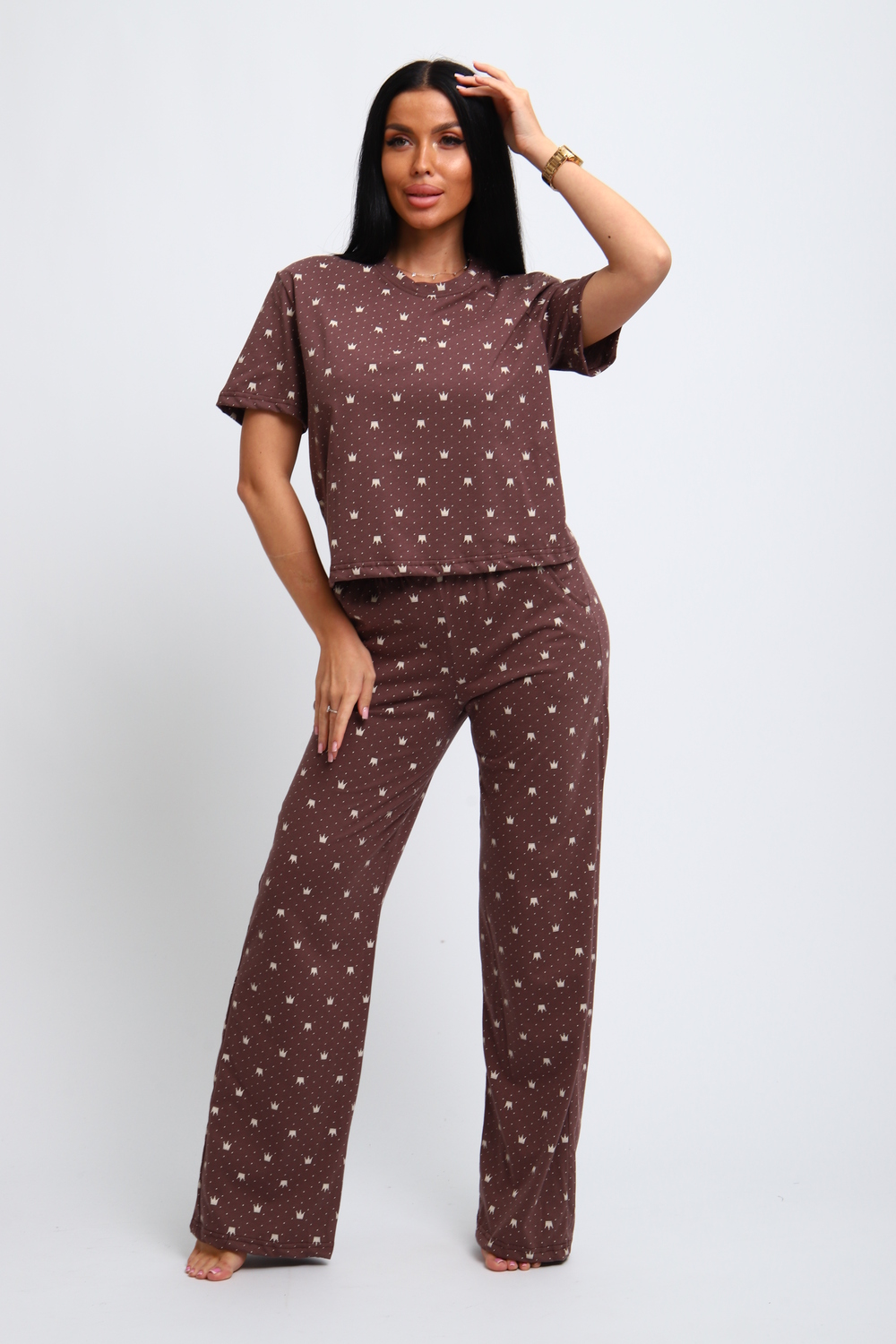Пижама футболка и брюки. Брюки прямого кроя, с карманами. Футболка с коротким рукавом. Цвет: коричневый; Материал: кулирка; Состав: 100% хлопок.