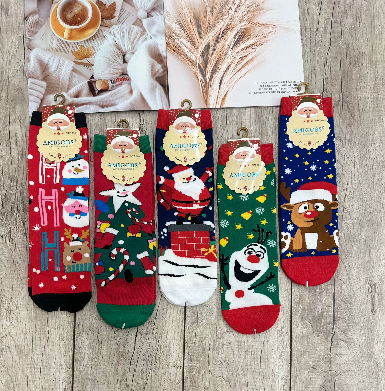 Носки новогодние женские 10пар (разного цвета), код 50332211