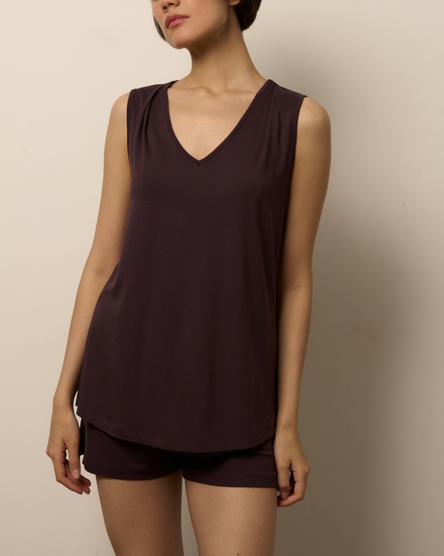 РОЗНИЧНАЯ ЦЕНА 3707руб. Топ свободного кроя с фигурным низом, плечевой складой. Шорты свободного кроя, средней длины с разрезами. Состав: МИКРОМОДАЛ 95%; ЭЛАСТАН 5%