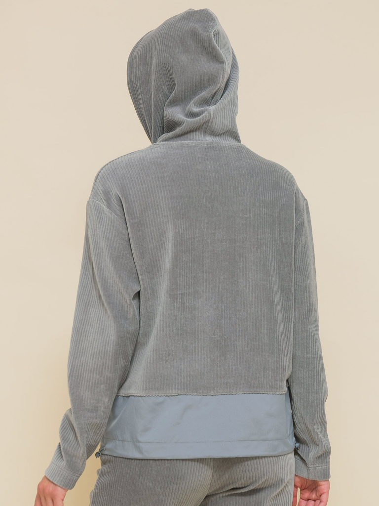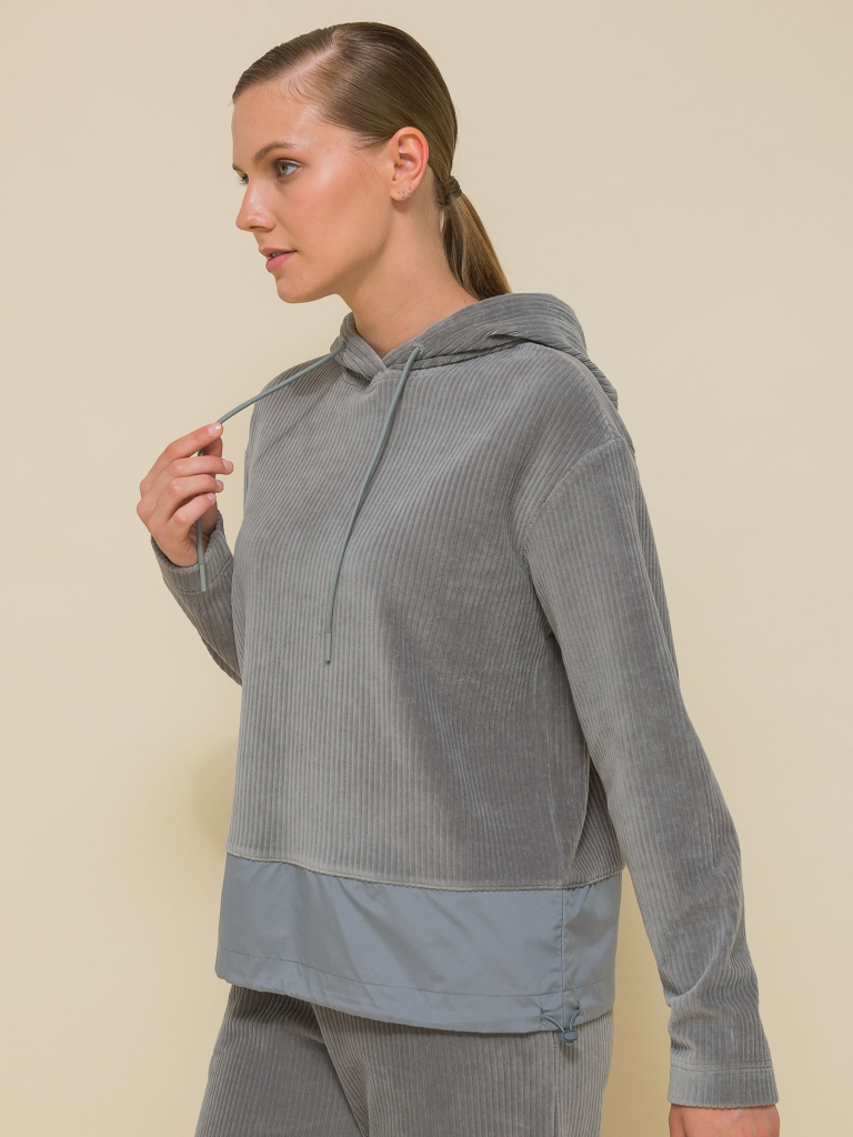 Женская плюшевая толстовка со вставкой из гладкой курточной ткани. Сочетание материалов с разной фактурой — актуальный тренд сезона. Свободная толстовка из трикотажного вельвета со спущенным плечом подарит вам ощущение комфорта и уюта. Худи с капюшоном на кулиске, защитит от холода и ветра. По низу изделия также есть кулиска — её можно затянуть и получится кроп-толстовка. Худи однотонное, без принта. Неприхотливо в уходе. В составе ткани преобладает высококачественый хлопок — толстовка мягкая и прекрасно пропускает воздух. Полиэстер и эластан обеспечивают формоустойчивость надолго. Модель представлена в двух цветах. Чёрная толстовка — практичный, базовый вариант. Серое худи также универсально. Размерный ряд: XS (42): S (44): M (46): L (48): XL (50). Толстовка подходит женщинам, девушкам, девочкам-подросткам. Она идеальная для работы, учёбы, отдыха, перелётов, прогулок. А также может быть использована в качестве домашней одежды. Худи можно носить осенью и весной (демисезон), зимой и в прохладную погоду летом. Такую толстовку легко комбинировать с разными моделями брюк. Она станет замечательным подарком сестре, подруге или маме на Новый год или любой другой праздник. Состав: 67%хлопок 29%полиэстер 4%эластан,вставка: 100%полиэстер Возрастная группа: Standard Сезон: Осень Год: 2023 Пол: Женщины