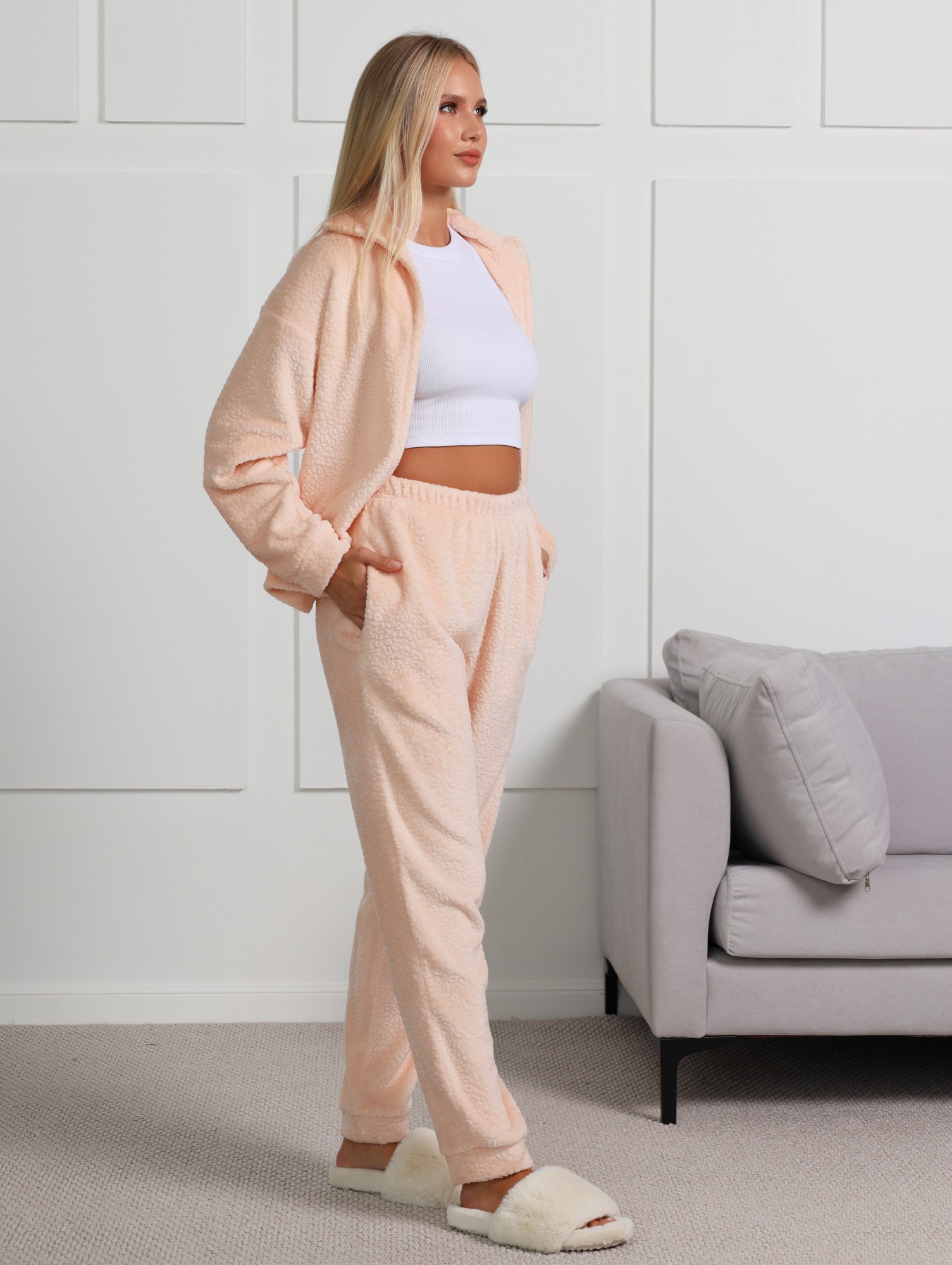 Костюм из гладкокрашенного полотна «велсофт», состоящий из куртки и брюк. Куртка – из полотна «велсофт», прямого силуэта, с длинными втачными рукавами, воротником «стойка», центральной бортовой застежкой на тесьму «молния» и вышивкой на спинке. Нижние срезы рукавов обработаны притачными манжетами. Низ изделия – с притачным поясом. Брюки – из гладкокрашенного полотна «вельмонд» классического покроя, с карманами в боковых швах, эластичной тесьмой по талии и манжетами по низу изделия.