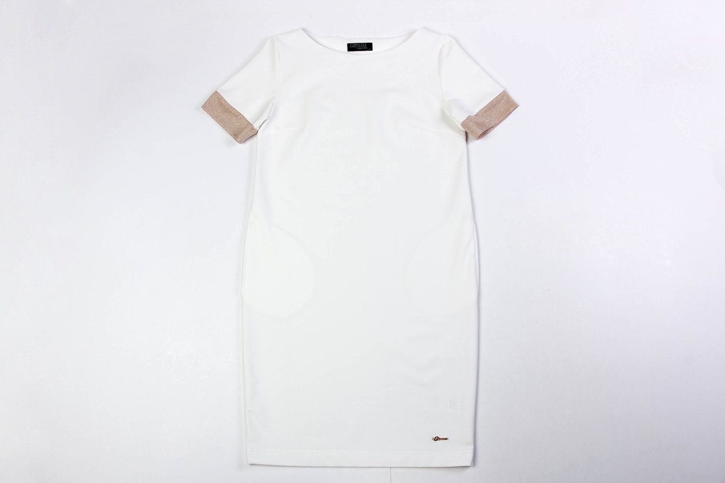 В нашем каталоге появились чудесные трикотажные платья в лучших фасонах и длине. Платье легкого овального силуэта элегантной длины с карманами в боковых швах, что делает это изделие максимально комфортным в носке для обладательницы фигуры любого типа. Контрастный манжет из ткани с люрексом-изюминка данной модели. Спокойная цветовая гамма напоминает о долгожданном летнем сезоне. Форма горловины-«лодочка». Состав трикотажа: 75% хлопок, 20% полиэстер, 5% спандекс.