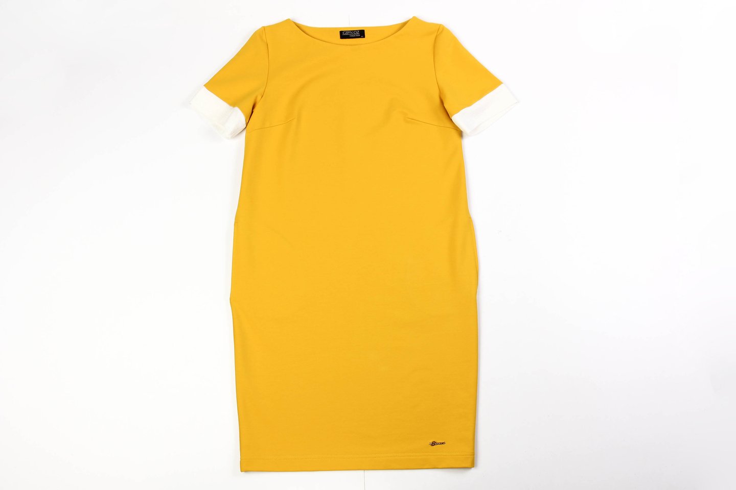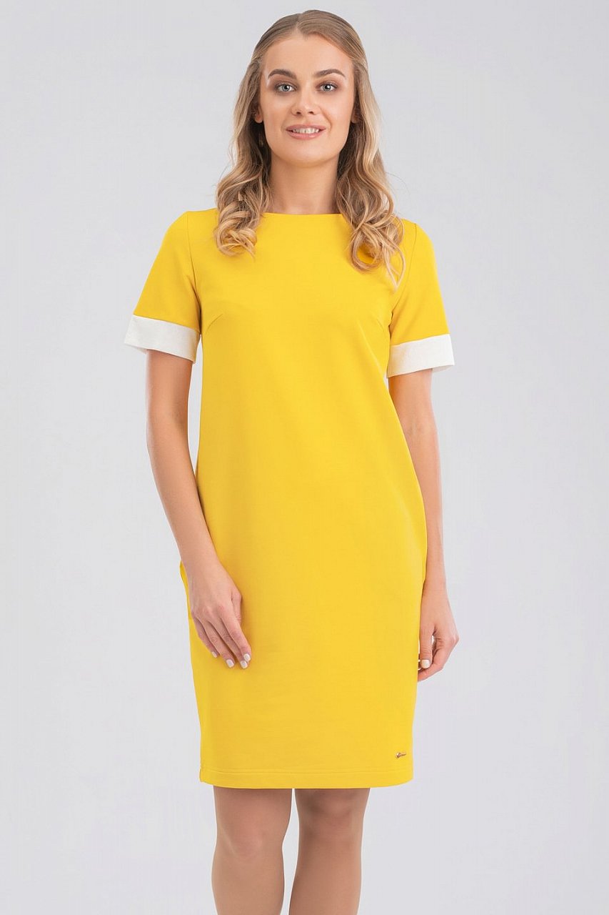 желтый В нашем каталоге появились чудесные трикотажные платья в лучших фасонах и длине. Платье легкого овального силуэта элегантной длины с карманами в боковых швах, что делает это изделие максимально комфортным в носке для обладательницы фигуры любого типа. Контрастный манжет из ткани с люрексом-изюминка данной модели. Спокойная цветовая гамма напоминает о долгожданном летнем сезоне. Форма горловины-«лодочка». Состав трикотажа: 75% хлопок, 20% полиэстер, 5% спандекс.