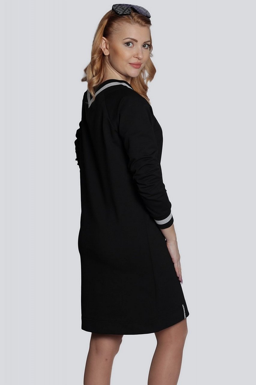 черный Модное платье в стиле спорт-шик должно быть в гардеробе каждой женщины. Помимо того, что такая одежда очень удобна, она еще универсальна, поэтому уместна в любой обстановке. Всего несколько правильно подобранных аксессуаров и спортивная одежда превращается в наряд для свиданий. Состав трикотажа: 75% хлопок, 20% полиэстер, 5% спандекс.