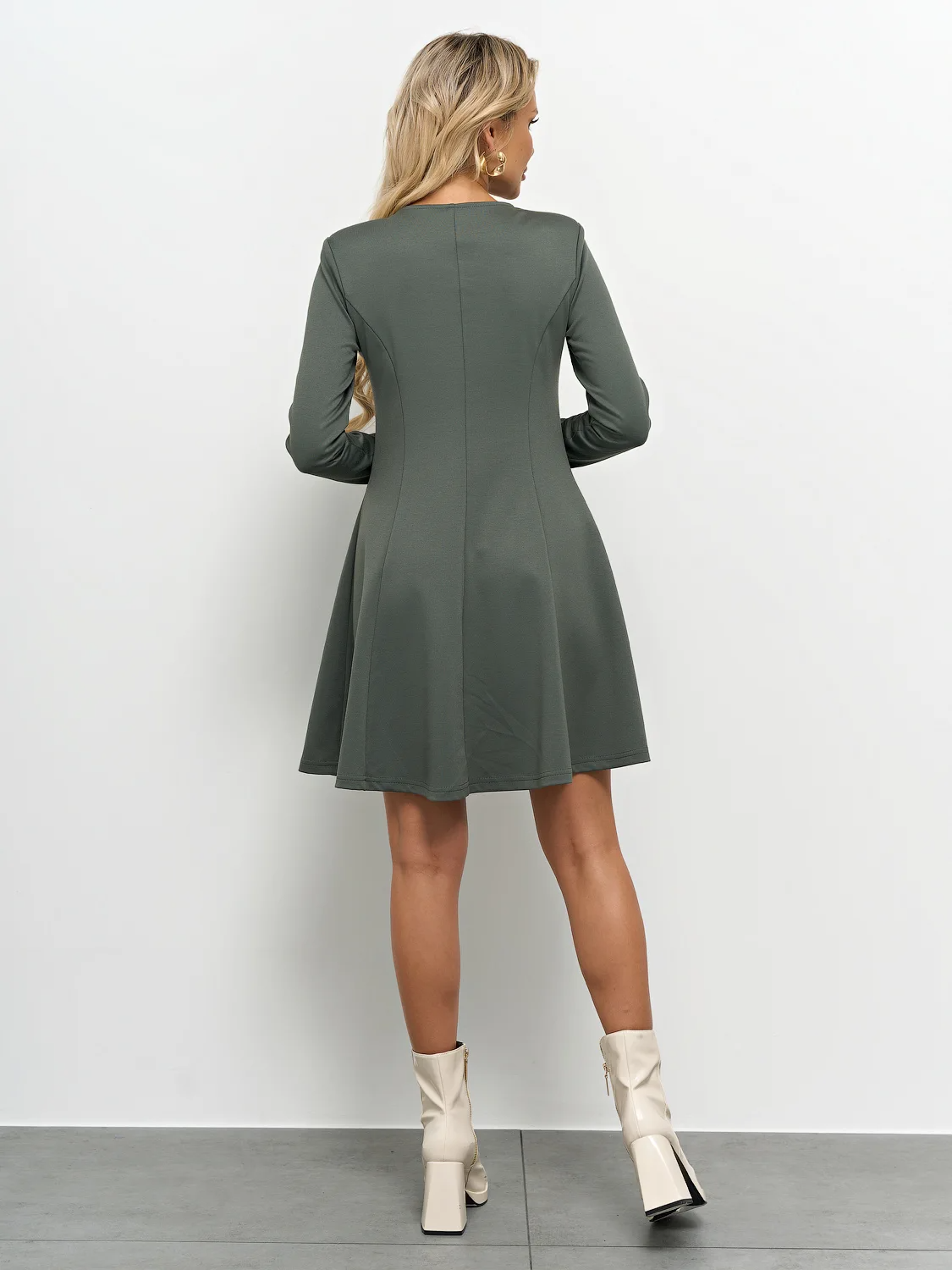 По переду и спинке проходят рельефы, смещенные к боковому шву.