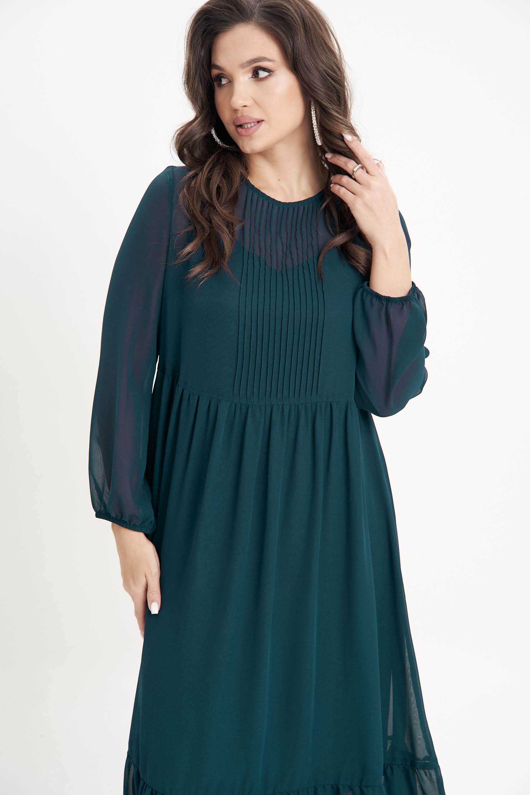 Современная мода диктует новые правила: платья из шифона плавно из нарядных перешли в наш повседневный гардероб. Прогулка летним вечером и в не жаркий день в такой одежде - одно удовольствие, лёгкое, струящееся полотно изящно создает ощущение воздушности. Свободный, упрямлённый силуэт, втачной покрой, отрезной лиф, чуть выше линии талии. Нижняя часть платья - коническая со сборкой. По низу платья - притачной волан. Спинка со средним швом и застёжкой.Рукав с манжетой и сборкой. Нижнее платье из подкладочной вискозы, А-силуэта, на регулирующихся бретелях.Длина платья около 117 см. Длина рукава около 60 см.Длина нижнего платья около 102 см.