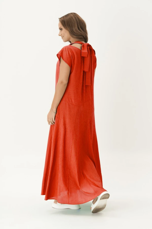 Чем может удивить платье, кроме принта? Правильно, кроем. Элемент неочевидной чувственности и сюрприза кроется в изделии с разрезом. Чем выше последний, тем горячее и интереснее игра, тем элегантнее походка, тем больше восхищённых взглядов задерживается на обладательнице интересного платья.Свободный А-силуэт с цельнокроенным рукавом, ассиметричные линии членения отрезной нижней части платья с коническими вставками и эффектным разрезом. Оригинальный вырез горловины с завязкой-бантом на спинке.Длина платья около 132 см. Длина рукава с плечом около 22 см.