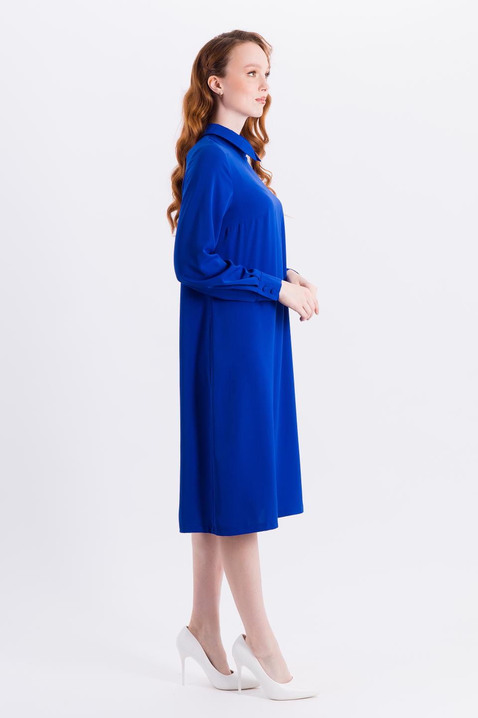 Описание: Слегка расклешенное платье притягивает взгляды необычными элементами- застроченные складки по кокетке и центру рукава прекрасно гармонируют с компактным воротничком на стойке и декоративным галстуком-бантом.