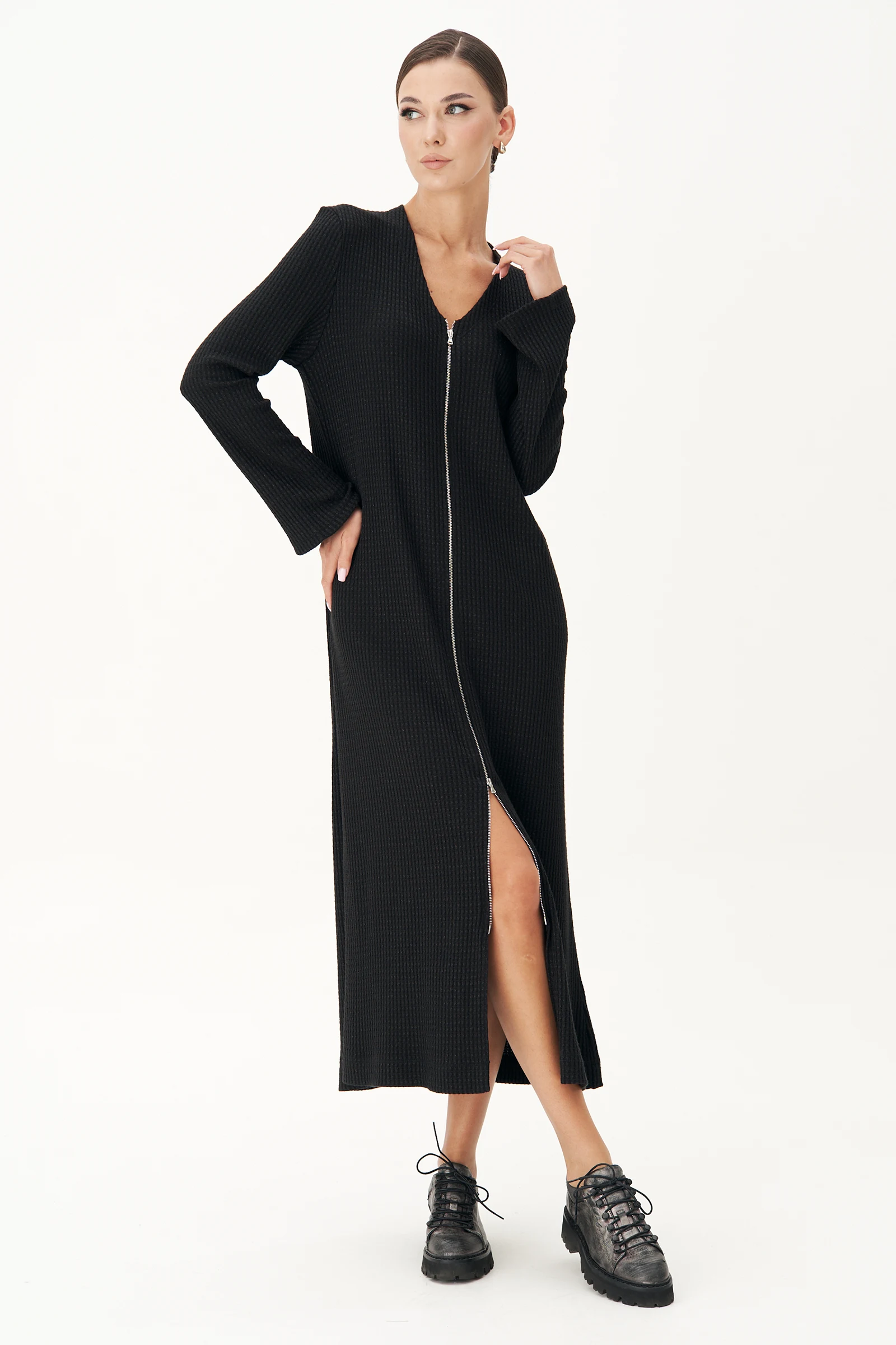 Любимый трикотаж, он по прежнему не выходит из списка модных трендов. Осень предлагает нам платья чуть более длинные и слегка свободные, но за счет мягкости полотна, они уютно обнимают вас, даря максимум комфорта, а лёгкое мерцающее напыление, придает образу изысканную элегантность.Полуприлегающий силуэт, втачной покрой, -образная горловина, центральная застёжка на тесьму-молнию и эффектный разрез.Длина платья около 130 см.Длина рукава около 62 см.