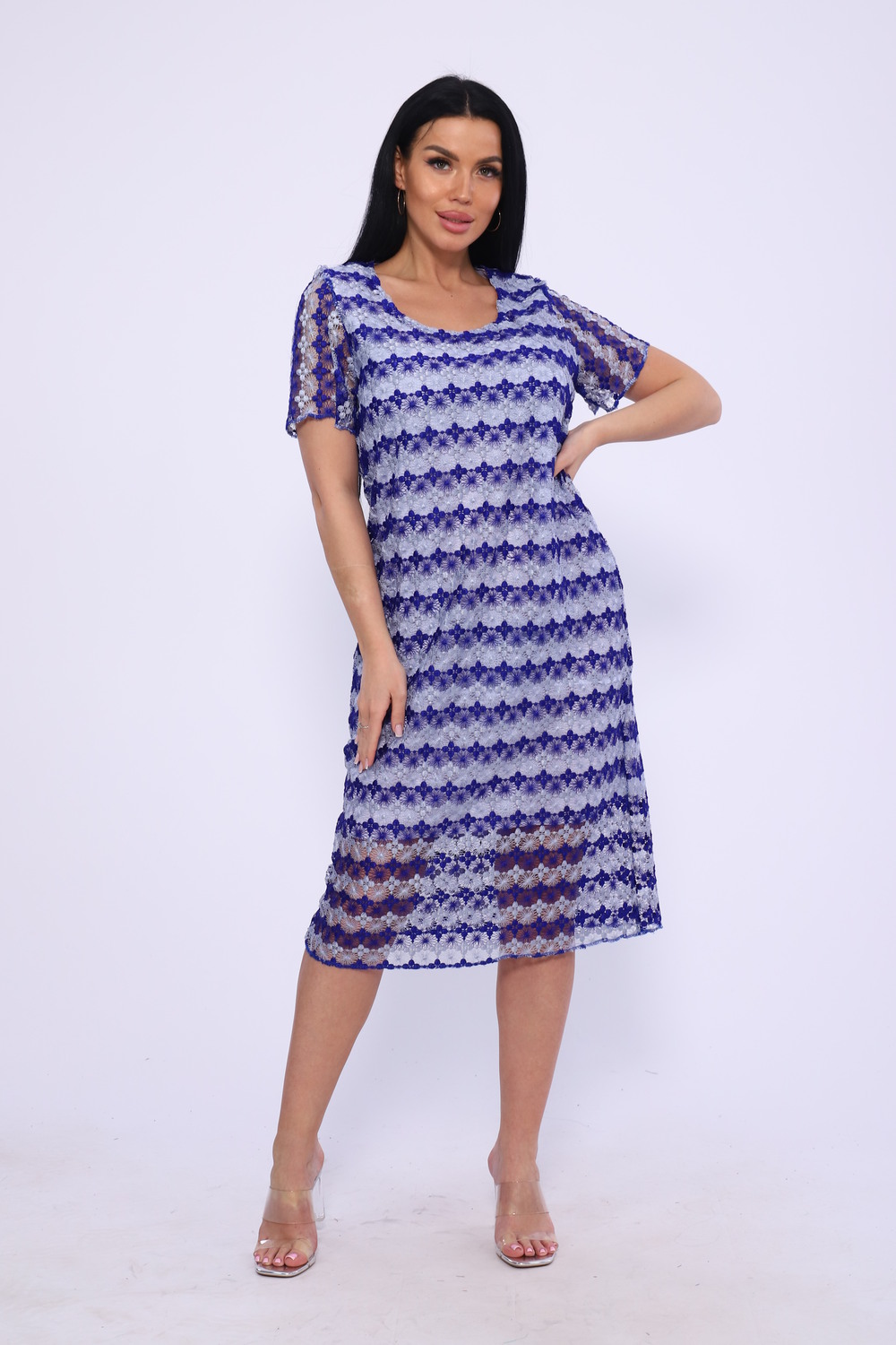 Женское элегантное платье прямого силуэта. Изделие с округлой горловиной, коротким рукавом и подкладкой чуть выше колена. Подойдет как и для повседневной носки, так и на праздник.