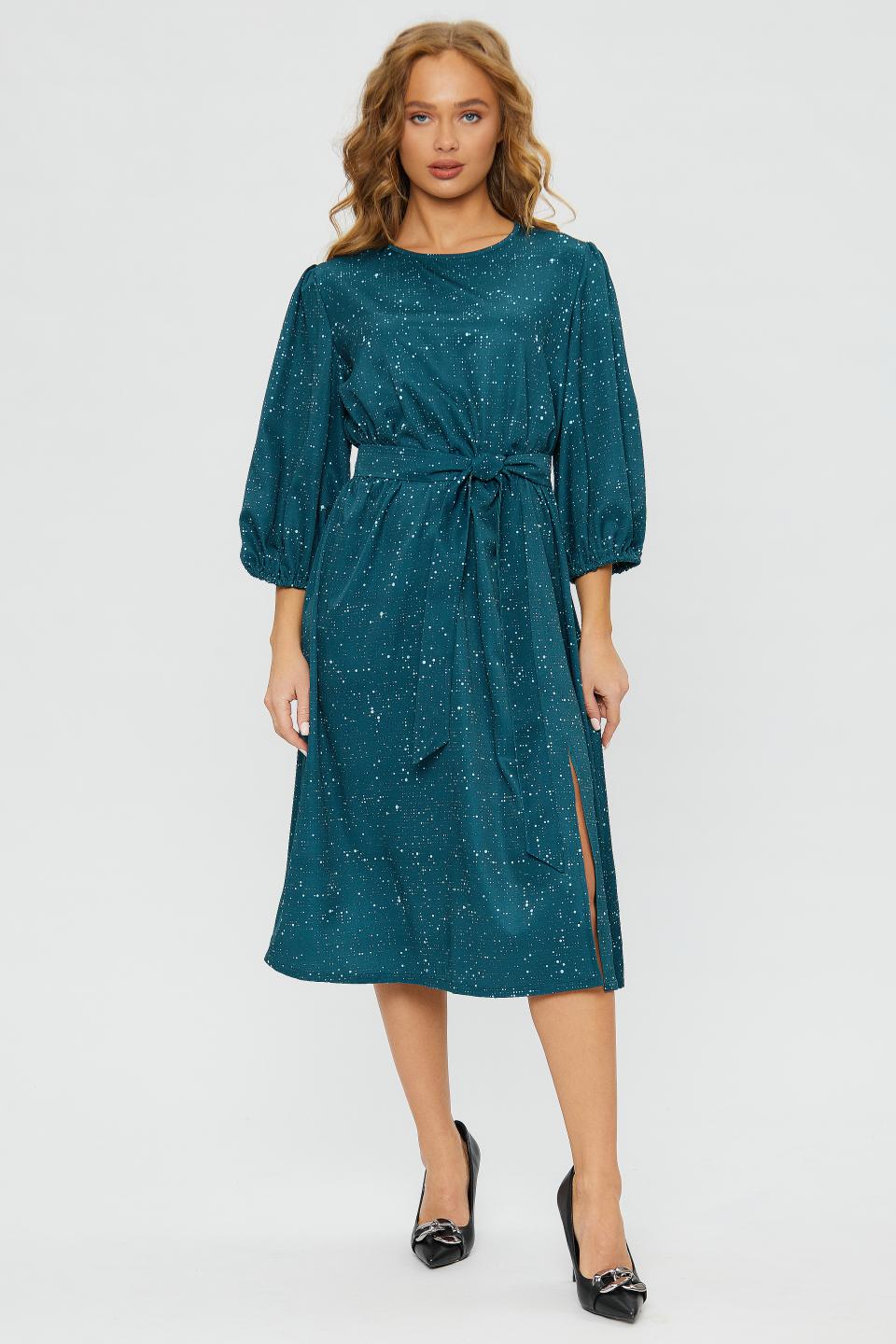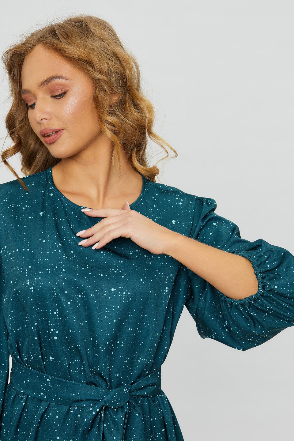 Описание: Воздушное платье спокойного, слегка расклешенного силуэта. Подрез по талии и низ пышных рукавов собраны на резинку, что дарит комфорт движениям. Разрез по юбке спрятан в расклешении и деликатно приоткрывается при ходьбе. Аккуратный полукруглый вырез горловины завершен застежкой на пуговку по спинке. Завязывающийся пояс в комплекте позволит регулировать объем по талии.