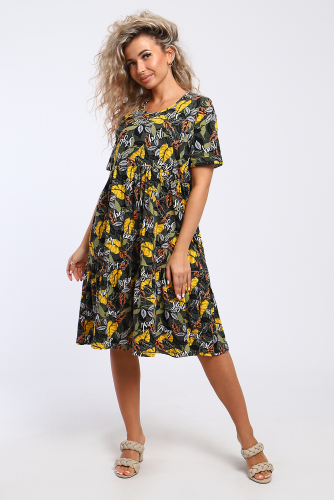 Платье А - силуэта с короткими рукавами и фигурным низом. Карманы в боковых швах. Необходимый элемент гардероба для легких образов.