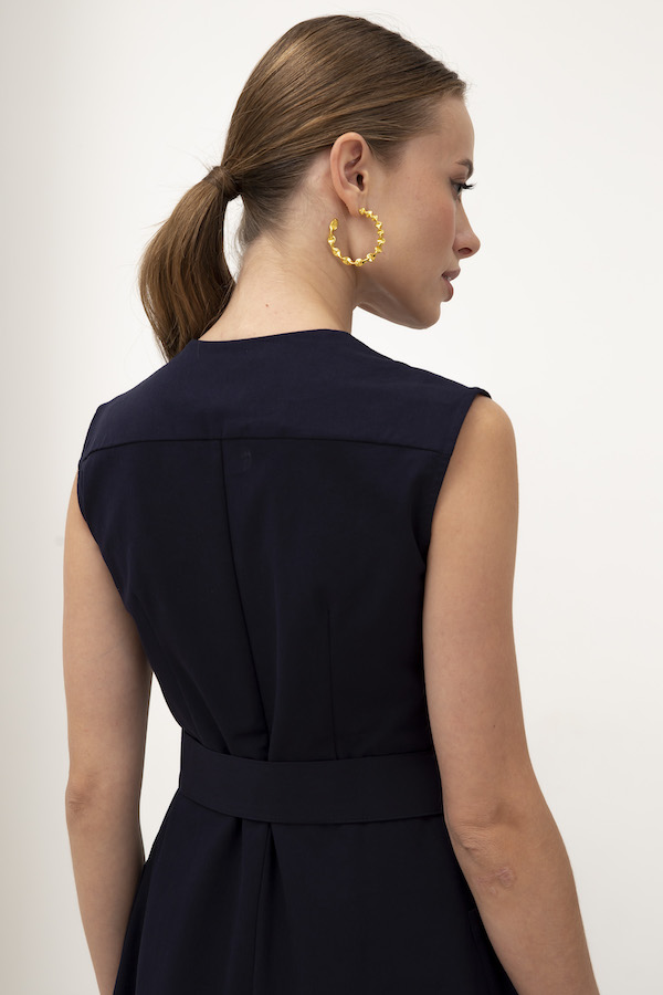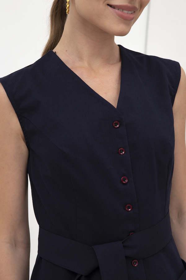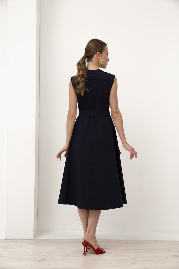 Платье пришло без пояса, ткань плотная, цвет тёмно-синий, брака нет.