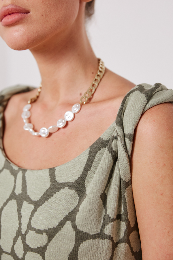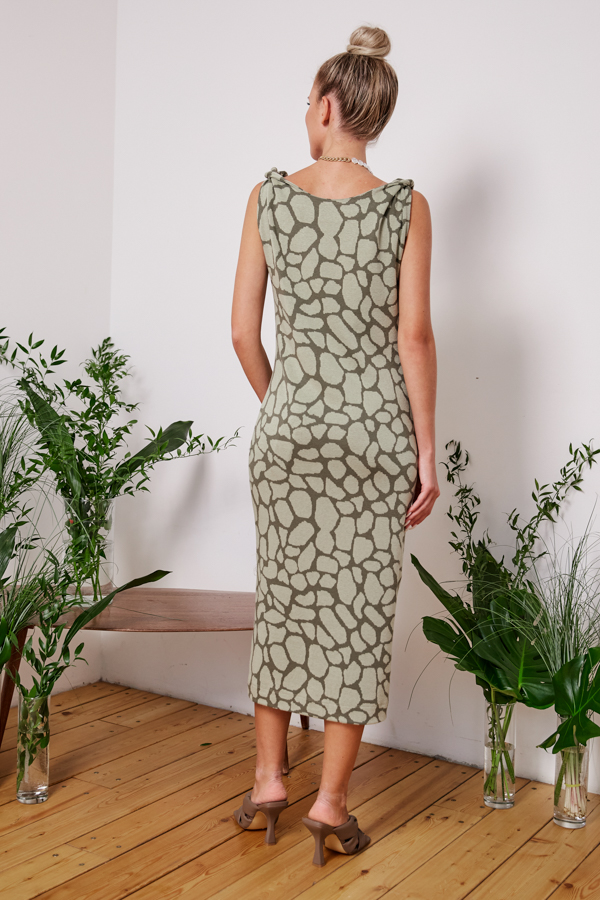 Платье полуприлегающего силуэта из мягкого, эластичного полотна. Оригинальный крой с перекрутом на плечах. Лиф двухслойный с круглым вырезом горловины.
