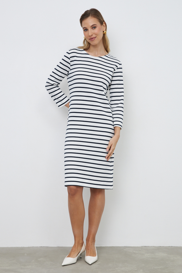 Платье полуприлегающего силуэта из эластичного полотна. Втачной рукав. Круглый вырез горловины.
