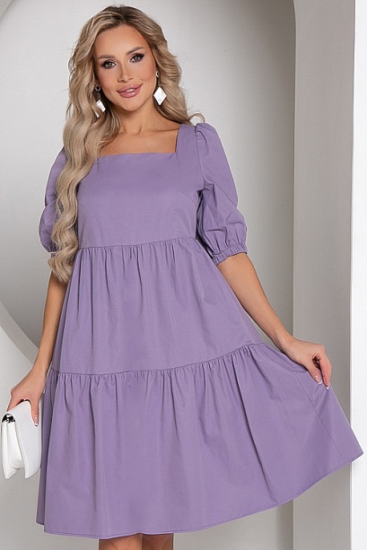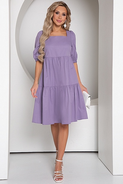 Платье из текстильного полотна свободного силуэта с притачными воланами.Горловина каре.