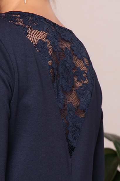 Платье из трикотажного полотна  джерси трапецевидного силуэта со вставками из кружева по горловине и спине.
