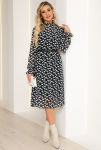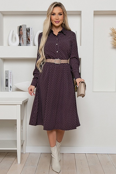 Платье из текстильного полотна отрезное по линии талии.Ремень в комплект не входит.