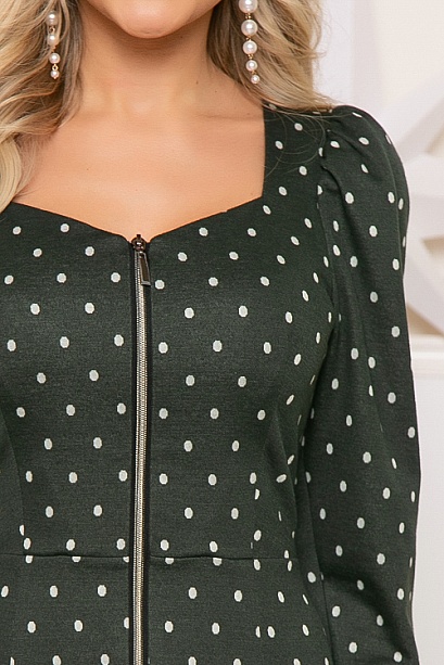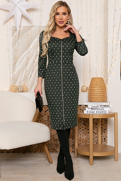 Платье из жаккардового трикотажного полотна полуприлегающего силуэта с центральной застежкой на молнию.