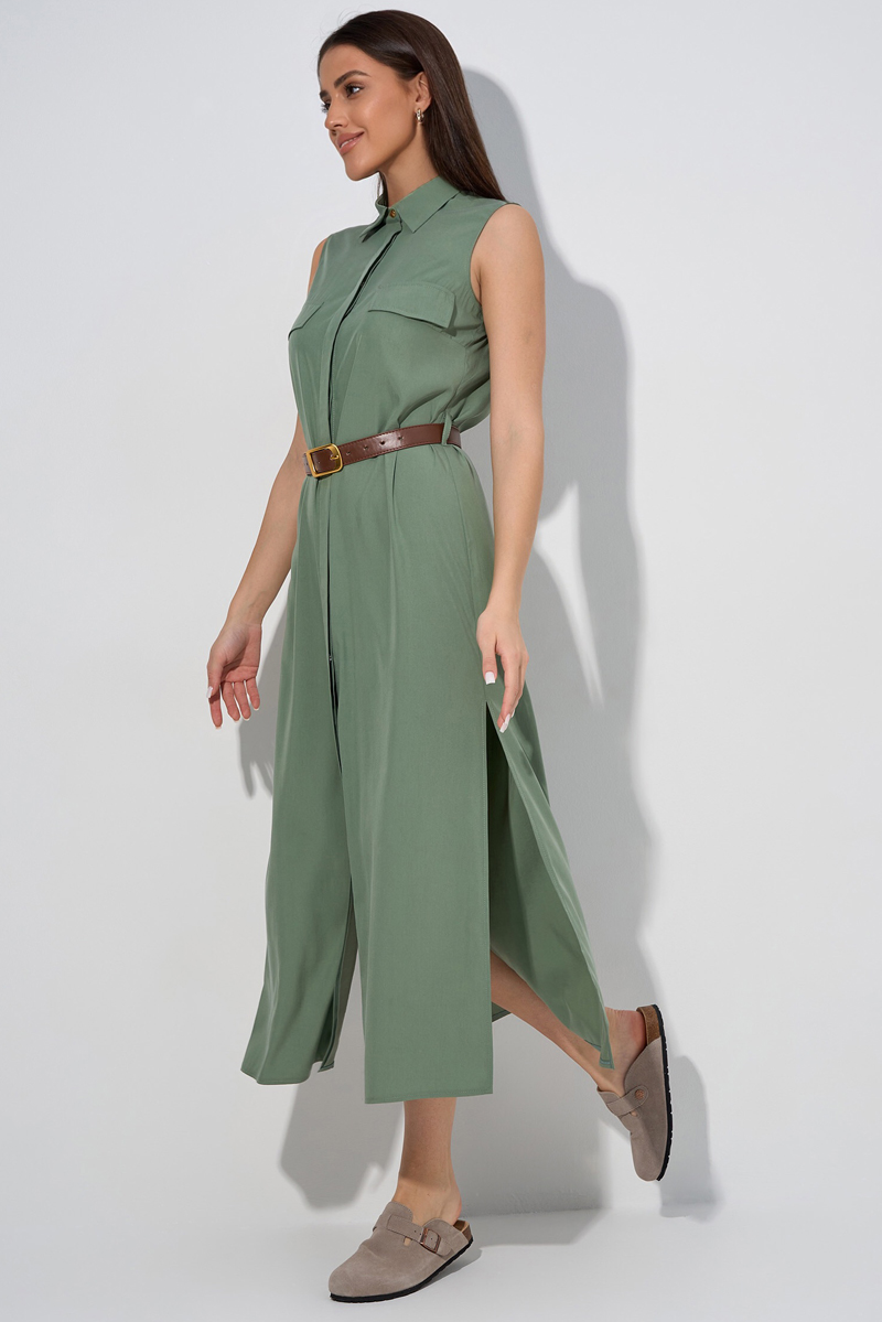 Эффектное платье в стиле карго, накладные карманы, длина макси, глубокие разрезы по бокам, из утяжеленного струящегося тенсела. Подклад: без подклада. Силуэт: Полуприлегающий. Длина: 130 см.