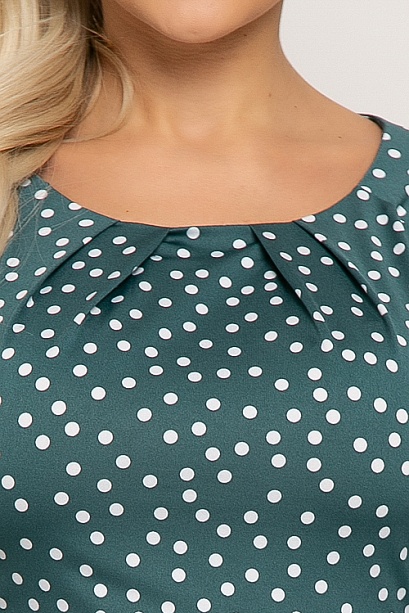 Комбинированное платье.Верх из трикотажного полотна в горох,низ из плотного джерси.Ремень в комплект не входит.
