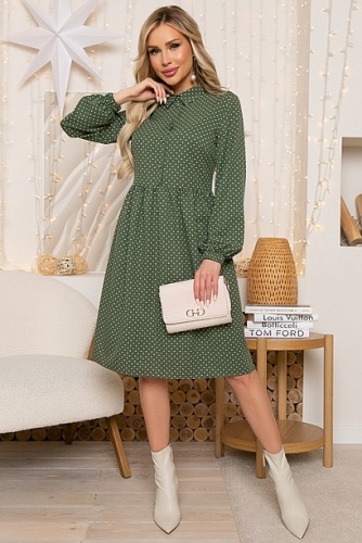 Платье из жаккардового трикотажного полотна в гусиную лапку с контрастной отделкой.